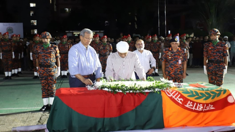নিহত ফায়ার ফাইটার শামীম আহমেদের জানাজায় স্বরাষ্ট্র উপদেষ্টার অংশগ্রহণ