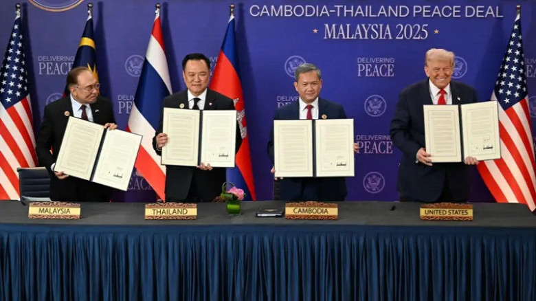 ট্রাম্পের হাতে। তাঁর উপস্থিতিতে কুয়ালালামপুরে থাইল্যান্ড ও কম্বোডিয়া স্বাক্ষর করেছে