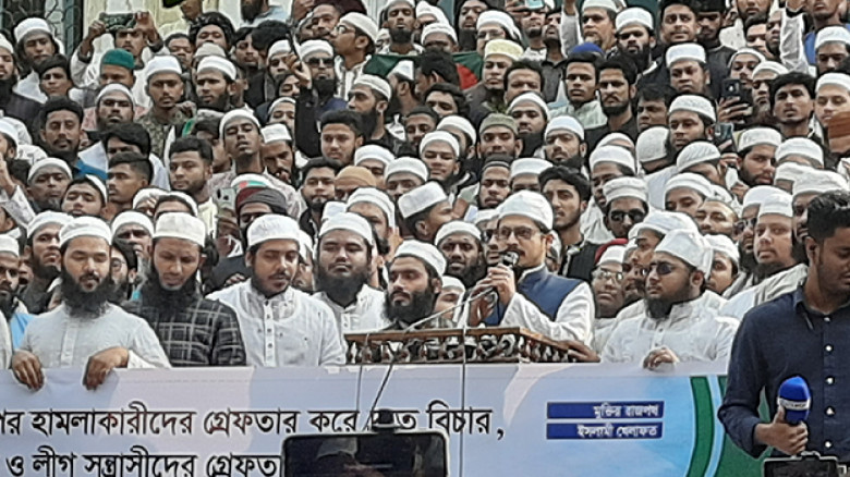 আজ ১৯ ডিসেম্বর শুক্রবার জুম্মার নামাজ শেষে জাতীয় মসজিদ বায়তুল মোকাররমে ‘শরিফ ওসমান হাদির ওপর হামলাকারীদের গ্রেপ্তার করে দ্রুত বিচার, অবৈধ অস্ত্র উদ্ধার ও লীগ সন্ত্রাসীদের গ্রেপ্তারের দাবিতে’ শীর্ষক ব্যানারে বিক্ষোভ কর্মসূচি শুরু করে বাংলাদেশ খেলাফত ছাত্র মজলিস। বিক্ষোভ মিছিল থেকে তিনি এ দাবি করেন।...…